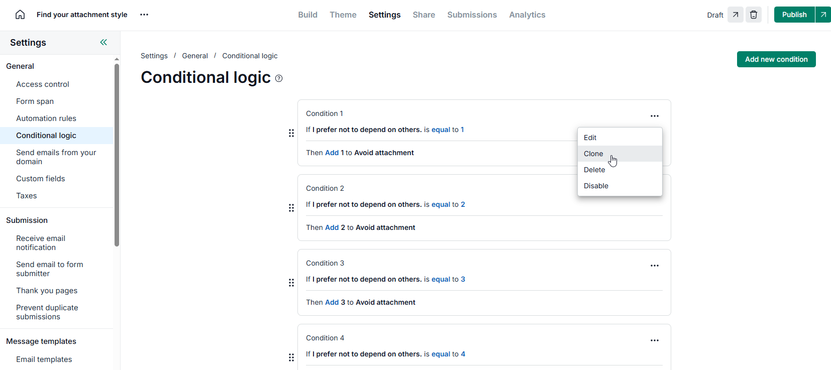 Click on Conditional logic, and you will see a list of all the conditions that are currently set up for your form.